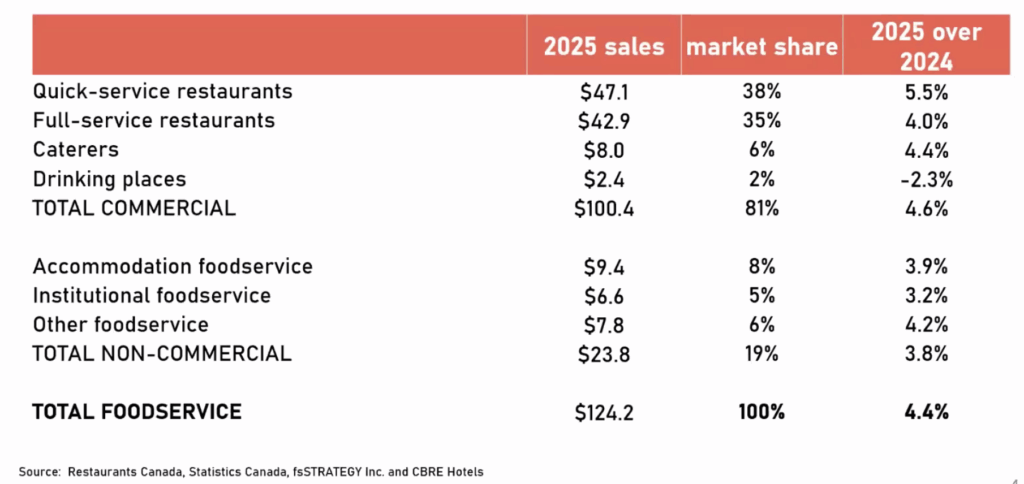 As Canada’s foodservice industry heads into the final quarter of 2025, restaurant operators face both opportunities and challenges. Total foodservice sales are projected to hit $124.2 billion this year, up 4.4% from 2024 according to Restaurants Canada. But behind that headline growth lies a more complex reality of shifting consumer behaviour, economic pressures, and operational hurdles.