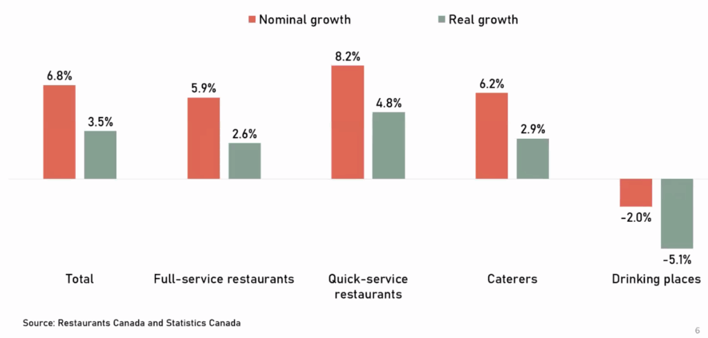 • 75% of Canadians are dining out less, but cheque size gains lag inflation.
