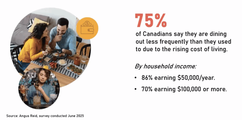 • 75% of Canadians report eating out less due to cost-of-living pressures.